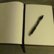 Pen poised above paper,